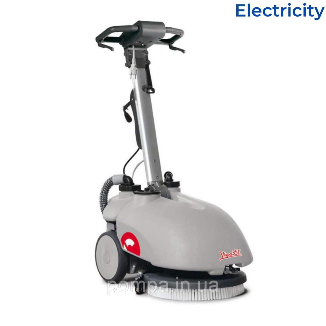 Модель зламаної машини Comac Vispa 35E — найменша поломочна машина від італійського виробника Comac із живленням від мережі 220 В. Призначена для вологого прибирання невеликих приміщень загальною площею до 1500 м кв. Ідеально замінить ручний прибиральний інвентар: брудна вода збирається в бак і не розмазується підлогою, як у разі ручного прибирання за допомогою мопів.